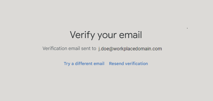 - A verification email from Google will be sent to that email address and you will see the following screen: