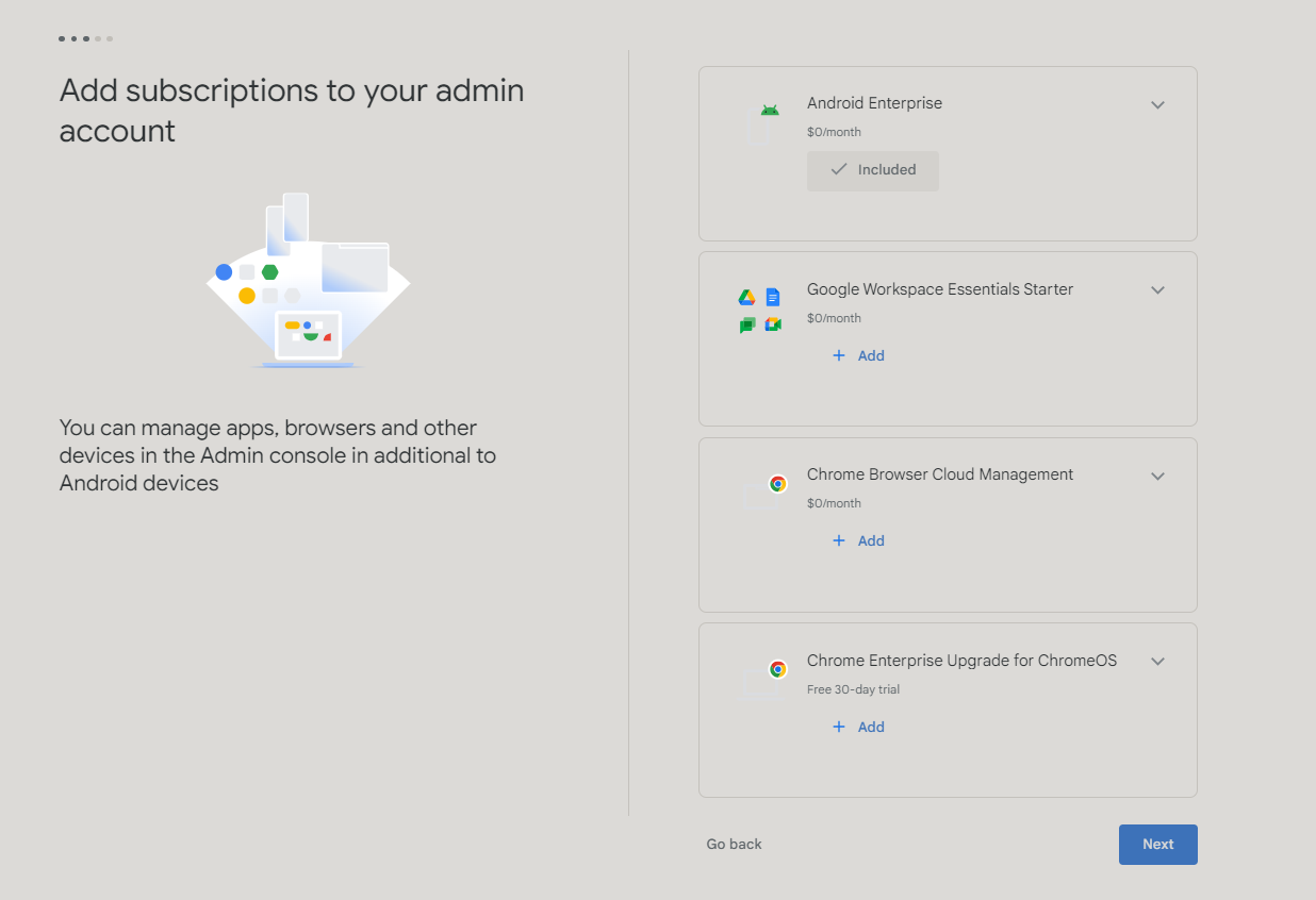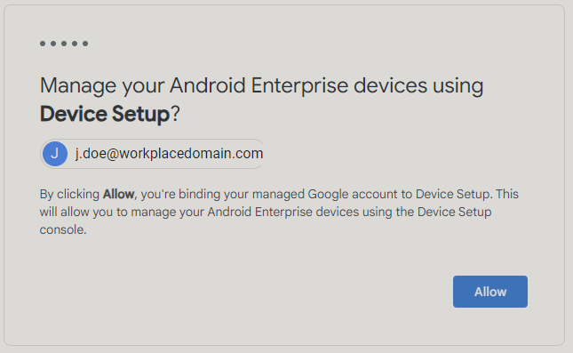 - If you use a Gmail account and not a work-related domain, you will only be able to manage Android devices, as shown in the below screen: