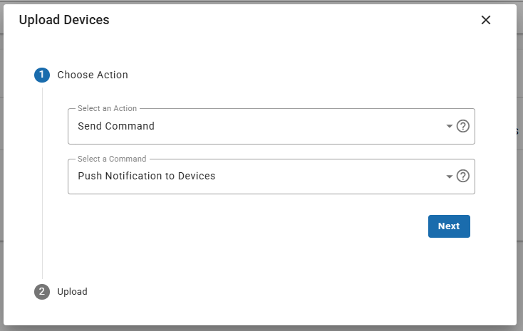 - From the "Select an action" dropdown menu, choose "Send Command", then select "Push Notification".