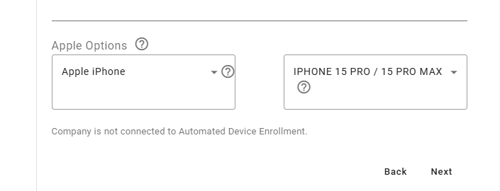 - If the devices are Apple devices, you can choose the default manufacturer (iPad or iPhone), the model number, and choose the ADE (Automated Device Enrollment) profile.
