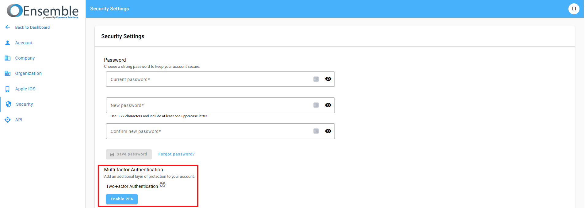 - Click "Enable 2FA" to generate a QR Code and an authentication token.