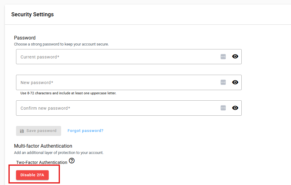 - Click "Disable 2FA"