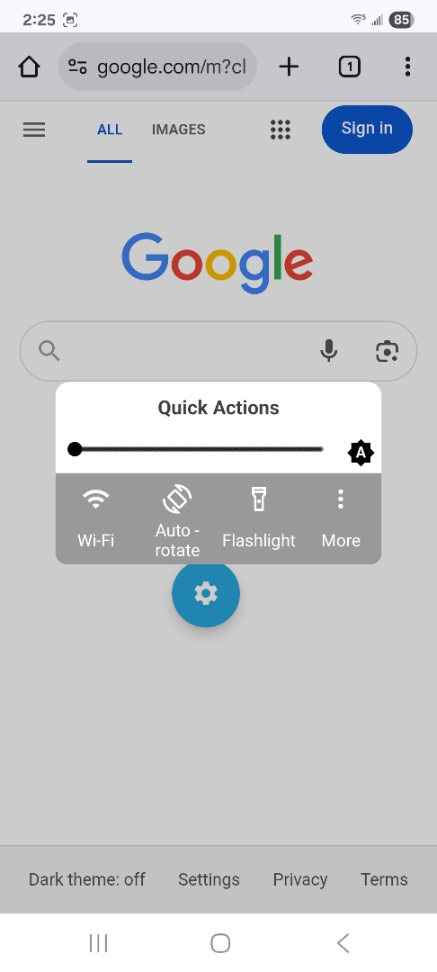 On an Android device, if Enable Quick Actions Menu in action bar is enabled, there will be a Gear icon in the top right of the device, directly to the left of the Ensemble menu button, as outlined below: