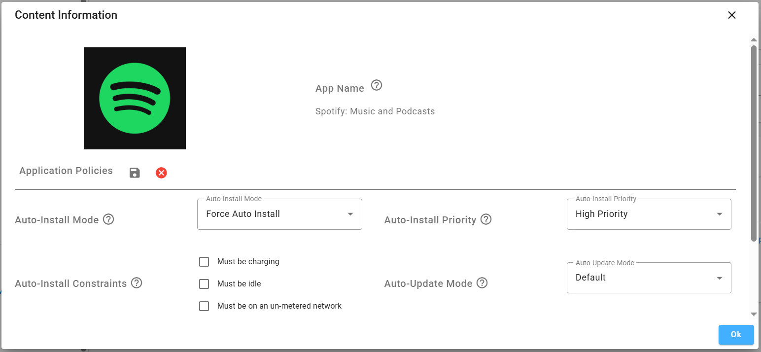 - Auto Install Once: This application will be installed once. The app can be uninstalled and must be installed manually again if it is removed. Private apps can only be updated manually, or the APK itself must handle its own updates.
